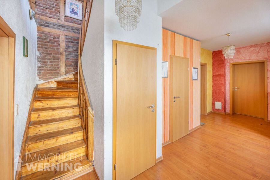 Das Haus besteht aus dem Haupthaus sowie einer separaten Wohnung in Teilen des EG. Beide Gebäudeteile werden aktuell durch eine Trockenbauwand voneinander getrennt. Im Rahmen einer Renovierung könnten die beide Bereiche wieder miteinander verbunden werden.